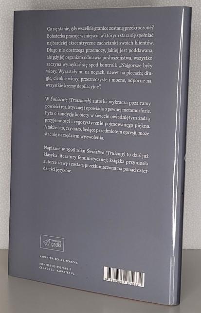 "Co się stanie, gdy wszelkie granice zostaną przekroczone? Bohaterka pracuje w miejscu, w którym stara się spełniać najbardziej ekscentryczne zachcianki swoich klientów. Długo nie dostrzega przemocy, jakiej jest poddawana, ale gdy jej organizm odmawia posłuszeństwa, wszystko zaczyna wymykać się spod kontroli: Najgorsze były włosy. Wyrastały mi na nogach, nawet na plecach; długie, cienkie włosy, przezroczyste i mocne, odporne na wszystkie depilatory. W „Świństwie” autorka wykracza poza ramy powieści realistycznej i opowiada o pewnej metamorfozie. Pyta o kondycję kobiety w świecie owładniętym żądzą przyjemności i rygorystycznie pojmowanego piękna. A także o to, czy ciało, będące przedmiotem opresji, może stać się narzędziem wyzwolenia. Napisane w 1996 roku „Świństwo” to dziś już klasyka literatury feministycznej; książka przyniosła autorce sławę i przetłumaczona została na ponad czterdzieści języków."