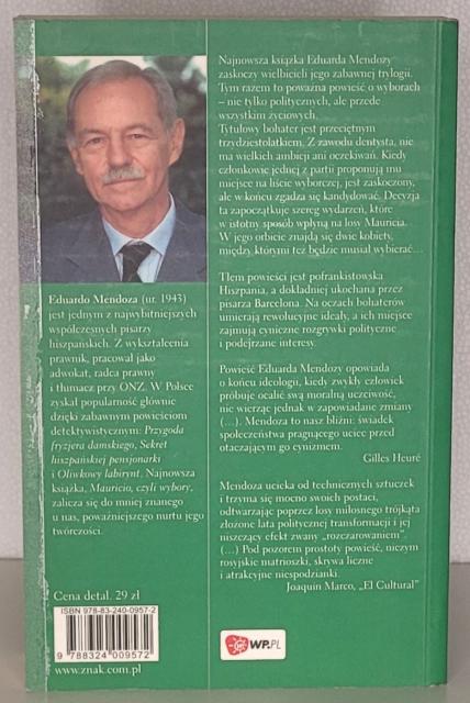 Nowa książka znanego hiszpańskiego autora z pewnością zaskoczy wielbicieli zabawnej trylogii wydanej kilka lat temu przez Znak. Tym razem mamy do czynienia z poważną powieścią o wyborach - nie tylko politycznych, ale przede wszystkim życiowych. Tytułowy bohater jest przeciętnym trzydziestolatkiem. Z zawodu dentysta, nie ma wielkich ambicji ani oczekiwań. Sam uważa się za osobę dość nudną i bez polotu. Kiedy członkowie Socjalistycznej Partii Katalonii proponują mu miejsce na liście wyborczej, jest zaskoczony, ale zgadza się kandydować. To zapoczątkuje cały szereg wydarzeń, które w istotny sposób wpłyną na życie bohatera. W jego orbicie znajdą się dwie kobiety, między którymi też będzie musiał wybierać... Tłem powieści jest pofrankistowska Hiszpania - a dokładniej ukochana przez pisarza Barcelona - w czasie, kiedy ubiegała się o organizację igrzysk olimpijskich. Na oczach bohaterów umierają rewolucyjne ideały, a ich miejsce zajmują cyniczne rozgrywki polityczne i podejrzane interesy.