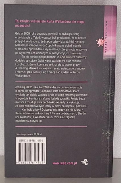 Nowa powieść Henninga Mankella i niespodziewany powrót ulubionego bohatera powieści poczytnego twórcy kryminałów! Kurta Wallandera nie trzeba nikomu przedstawiać, a fanom policjanta z Ystad nie trzeba przypominać, że cztery lata temu Henning Mankell zamknął serię o Wallanderze książką Niespokojny człowiek. Handen to napisana parę lat temu dla holenderskiego wydawcy i nigdzie później niepublikowana ostatnia książka, w której kultowy policjant z Ystad musi rozwikłać sprawę morderstwa. Mankell zdecydował się wydać teraz powieść w innych państwach oraz dołączyć do niej obszerny spis osób i miejsc ze świata Wallandera. Autor zwierza się również z pracy nad serią kryminałów i opisuje radości i problemy wynikające z jej popularności. Jesień 2002 roku. Wallander jest o krok od spełnienia marzenia o wyprowadzce z Ystad na wieś. Jednakże do kupna domu nigdy nie dochodzi. W ogrodzie posiadłości Wallander znajduje dwa ludzkie szkielety. Według ekspertyzy ciała zakopano co najmniej pół wieku temu. Komisarz z Ystad musi znów zaufać swojej intuicji, by odnaleźć mordercę sprzed lat…