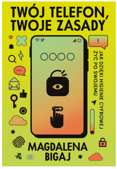 Nowa książka autorki „Wychowania przy ekranie”! Czy obserwując świat przez ekrany telefonów, podążając za tym, co lubi większość, patrząc na to, co podsuwa nam algorytm – rzeczywiście podejmujemy decyzje samodzielnie? Od czego zależy to, co myślimy o sobie i na temat otaczającego nas świata? Jakie cele przyświecają twórcom mediów społecznościowych, gier i komunikatorów? Czy to my rządzimy swoim telefonem, czy on nami? Magdalena Bigaj w swojej książce o higienie cyfrowej niczego młodym czytelnikom i czytelniczkom nie narzuca, wręcz przeciwnie: oddaje decyzje w ich ręce. Stawia jednak pytania, na które warto sobie odpowiedzieć. Dzieli się wiedza na temat wpływu telefonów i internetu na życie człowieka. To wiedza, do której ma prawo każda młoda osoba i bez której nie sposób zdrowo funkcjonować w świecie zdominowanym przez nowe technologie. „Dialog – zamiast wykładu. Rady podparte nauką – zamiast sztywnych wytycznych. Magda Bigaj, nie zmuszając Was do tłumaczenia się z tego, jak żyjecie, przekonuje do zachowania higieny cyfrowej. Twój telefon, twoje zasady oferuje wsparcie w internetowej samodzielności i szukaniu własnej drogi w świecie. Bo to, jakie będzie Wasze życie, zależy tez od tego, jakie cyfrowe otoczenie sobie zbudujecie. Dzięki tej książce świat może być bezpieczniejszy i bardziej empatyczny”. JUSTYNA SUCHECKA „Jak nie dać okraść się z czasu, jak dbać o swoje zasoby i korzystać z nowych technologii na własnych zasadach? Te pytania zadają sobie i specjalistom tysiące młodych osób i ich rodziców. Książka Magdy Bigaj odpowie na nie wszystkie: przystępnie, empatycznie, z humorem i po ludzku. Bo oswajanie nowych technologii to nie taka prosta sprawa. Życzę każdej, nie tylko młodej osobie, by jak najszybciej przeczytała te książkę”. LUCYNA KICIŃSKA Książka przeszła weryfikację suicydologiczną i otrzymała pozytywną opinie Instytutu Psychiatrii i Neurologii w Warszawie.