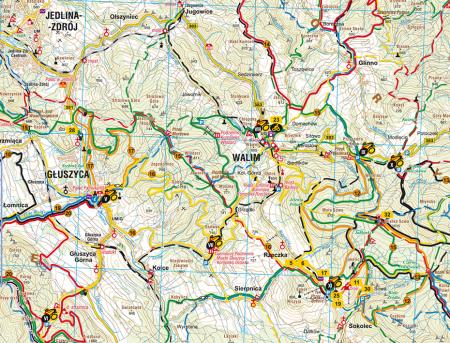 Mapa tras rowerowych MTB swym zasięgiem obejmuje obszar od Boguszowa-Gorców, na północnym zachodzie, po Bardo na południowym wschodzie.