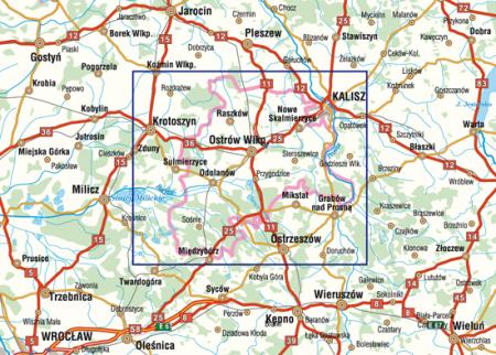 Obszar mapy ograniczony jest współrzędnymi 17°25’ - 18°14’ długości geograficznej wschodniej oraz 51°24’-51°48’ szerokości geograficznej północnej. Mapa posiada siatkę geograficzną opartą na elipsoidzie WGS 84, stosowaną w nawigacji.